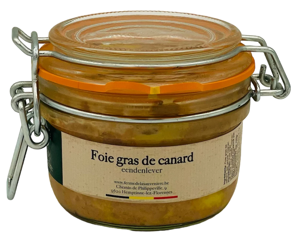 Le foie gras en verrine est constitué uniquement de lobes de foie gras assaisonnés, il est cuit à haute température afin de permettre un longue conservation.